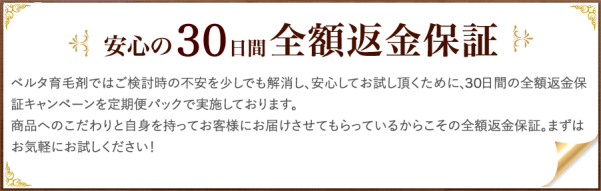 インターネットを中心に販売する育毛剤では当たり前の全額返金保証という制度もそのひとつ。ベルタ育毛剤にも当然この制度が存在するものの、ライバルの全額返金保証に比べると褒められるものではありません。